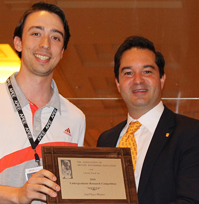 Students present research on topics in economics, political science, history, philosophy, sociology, law and other themes related to the APEE mission including political economy, private enterprise, entrepreneurship, and economic education. Since 2022, a jury composed of APEE members has selected the top three presentations for awards. Conference attendees are invited to vote for a Members’ Choice award. Awards are presented at the APEE Annual Business Meeting.